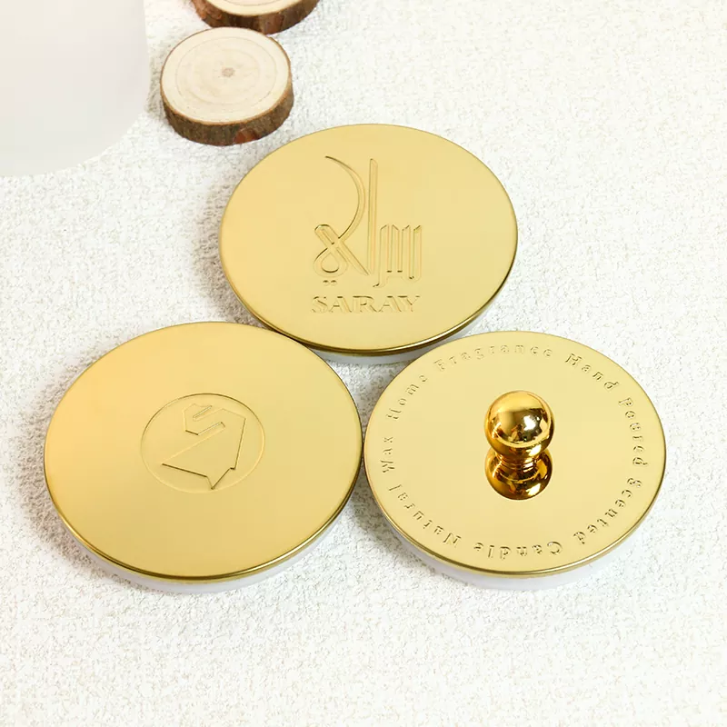 Tilpassbar, kan lokket lages med intaglio og pregeteknikker for å lage en rekke logoer, inkludert merkesymboler, for å oppfylle individuelle behov fullt ut. Kompatibel med alle stearinlyskrukker, tilfører det et unikt dekorativt og særegent preg. Rustfritt ståls holdbarhet og resirkulerbarhet bidrar til bærekraftig bruk. Enten brukes til installasjon av hjemmet duft eller tilpasset merkeemballasje, forbedrer den unike metallstilen den generelle kvaliteten på stearinlyset, noe som gjør det til et premiumtilbehør som kombinerer praktisk med estetikk, individualitet og miljøvennlighet.