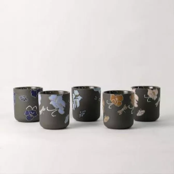 Floral Whisper håndmalt kunstlysestake blander østlig estetikk med praktisk design. Et utvalg av livlige farger, inkludert varm gul, stille blå, elegant grå, dyp lilla og varm brun, spenner fra livlige til dempet, enkelt tilpasses til enhver plass og stemning. Lysestakens kropp bruker underglasurmalingsteknikker for tradisjonelle blomster- og gressmotiver, pyntet med gullfolie. Designet er tidløst og miljøvennlig. Den keramiske kroppen er myk, behagelig å holde, og tilbyr utmerket termisk isolasjon. Designet henter inspirasjon fra klassiske japanske elementer, og utstråler eleganse og sjarm midt i den pulserende naturen. Koppen er liten og utsøkt, med kapasitet som passer til te, kaffe eller desserter. Den kan brukes alene for å pynte hverdagen, eller den kan kombineres med flere kopper for å fleksibelt møte behovene til familieunderholdende gjester eller personlig nytelse.