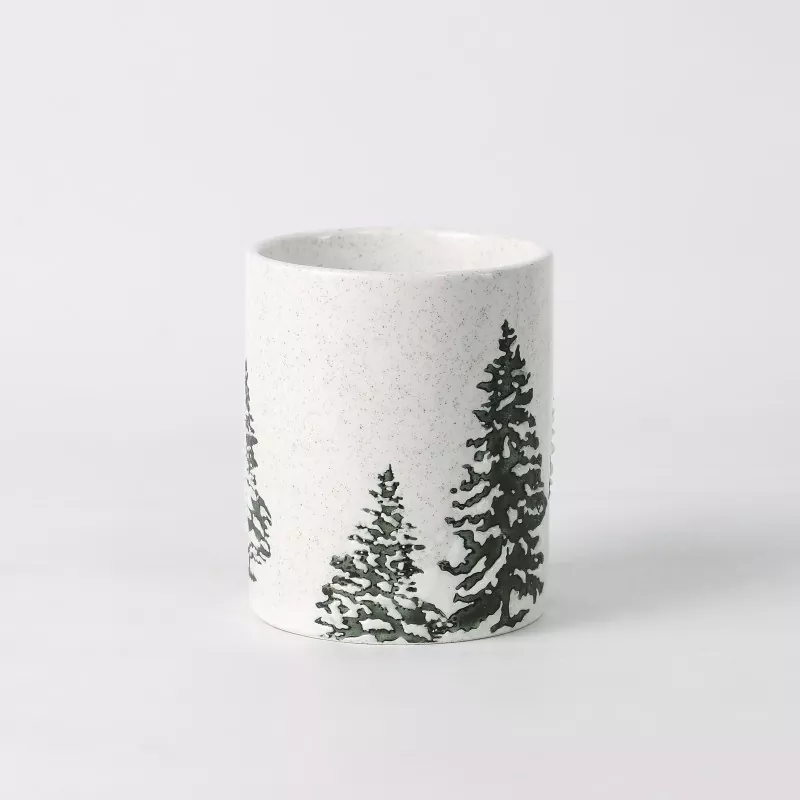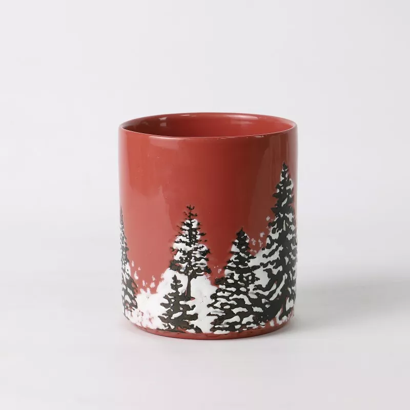 Hver håndmalte lysestake Christmas Pines er håndmalt med et furutredesign, med tydelige lag av detaljer i de mørkegrønne grenene og snøen, og naturlige, dynamiske penselstrøk, som sikrer at hver del er unik.
