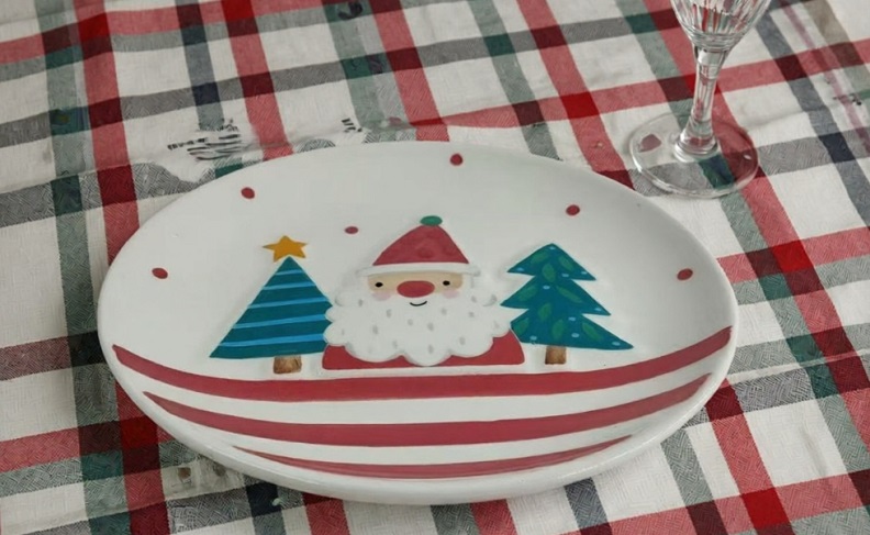 Feriedekorasjon:I de varme høytidene kan du parre denne julekeramiske fatgaven med duftlys. Mens stearinlyset flimrer og lyser opp den pregede julenissen, ser det ut til at hele tallerkenen blir levende, og skaper en drømmeaktig «eventyrjulaften»-atmosfære som fyller hjemmet ditt med varme og romantikk. Alternativt kan du legge den dekorative tallerkenen under juletreet; det vil bli et visuelt fokuspunkt på skrivebordet ditt, tiltrekke alles oppmerksomhet og legge til en unik sjarm til feriedekorasjonene dine.