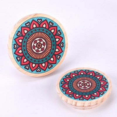 BYFs personlige mønsterutskrift av trelokk er laget av lysfarget naturlig tre, med et mandala-inspirert mønster. Hvert lokk har sin egen unike personlighet. Symmetriske geometriske former omgir blomstermotiver, og de livlige fargene - oransje, rosa, blå og grønn - skaper en kunstnerisk og unik estetikk. Lokkene er lette og praktiske, og tilbyr både forsegling og dekorative funksjoner. De er egnet for hjemmedufter, gavedekorasjoner og andre applikasjoner, som perfekt blandet naturlig tekstur med personlig estetikk.